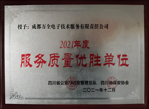 熱烈慶祝成都萬(wàn)全電子榮獲2021年度“服務(wù)質(zhì)量?jī)?yōu)勝單位”稱號(hào)